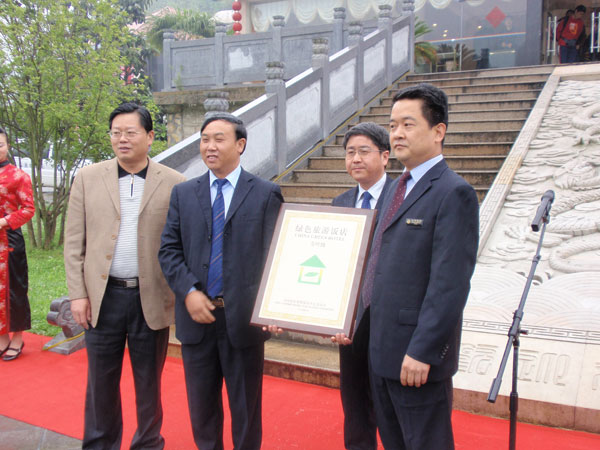 龙宫酒店是本市第一家,全省第三家获此殊荣的酒店,从2007年中旬开始,按照国家旅游局发布的《绿色旅游饭店》(lb/t007--2006)行业标准,以创建绿色旅游饭店为主要平台,扎实开展一系列的行之有效的创建活动,包括加强对客宣传,切实加强内部管理、教育和培训,采取一系列节能环保举措等,积极构建企业文化,有力地促进了酒店的发展和品牌建设。