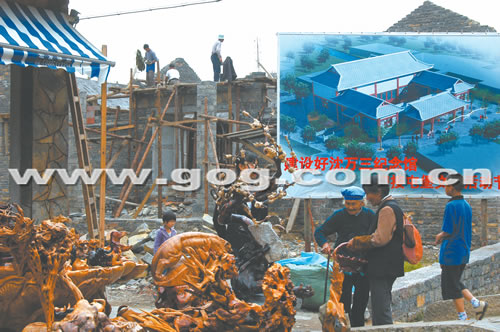 平坝县天龙屯堡景区不断挖掘旅游资源,近期投资兴建沈万山纪念馆,将于9月屯堡文化节前建成开放。图为兴建中的沈万山纪念馆。