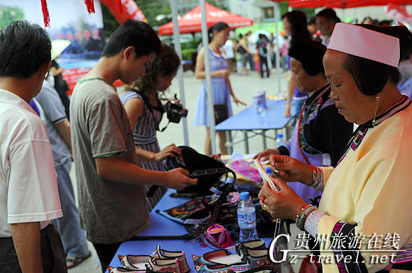 来自天龙的屯堡妇女在现场做布鞋