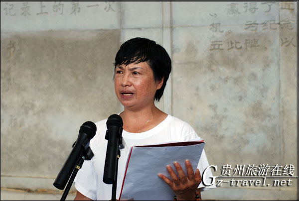 中午12点,“重走长征路 安顺千里行”活动圆满完成总结仪式在红军渡江纪念碑前举行。 安顺市委宣传部副部长郑汝林主持总结仪式,参加总结仪式的各级领导慰问了坝草老党员代表,安顺市委常委、宣传部部长颜学丽为坝草红军渡江纪念碑“爱国主义教育基地”授牌,镇宁县委常委、宣传部部长王府燕接牌,市委宣传部向二炮希望小学赠书。在安顺市若飞小学和坝草二炮希望小学结对子仪式、活动队员代表发言之后,安顺市委常委、宣传部部长颜学丽发表总结讲话,她强调这次活动是庆祝中国共产党建党90周年的大型爱国主义教育活动,弘扬了伟大的长征精神,也挖掘了安顺红色文化旅游资源。安顺市委宣传部副部长郑汝林宣布“重走长征路 安顺千里行”活动圆满完成!