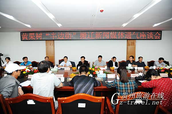 本网讯 2011年10月12日“黄果树‘半边街’搬迁新闻媒体通气座谈会”在黄果树风景名胜区管委会办公大楼召开。