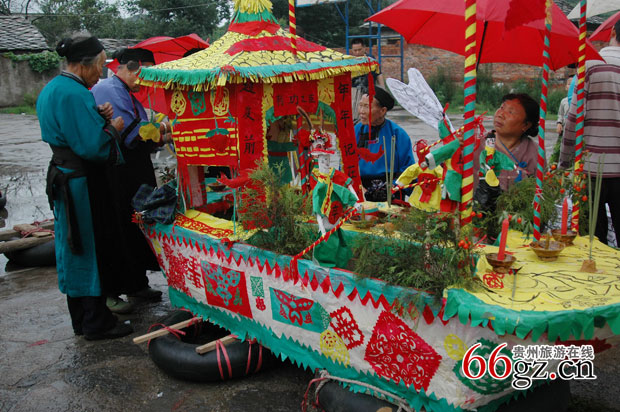 九溪村民为缅怀先祖,在七月半这三天都会举行重大的祭祖活动。这几天九溪屯堡里烟雾弥漫,这是因为屯堡人认为纸钱冥财烧得越多,越是对祖先的尊敬。人们在写有享用人姓名的纸封中装入钱纸,祭祀时焚烧,称“烧包”。“烧包”时,以包砌塔,纸钱包均为寸厚。烧包前,于圈外置金属质盆一个,内盛半盆清水。盆上搁有用来夹取煤炭的“夹钳”一个,以及菜刀一把。寓意为防止无主的孤魂野鬼靠近。