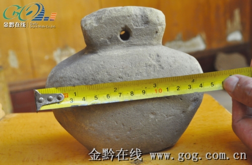 昨日,镇宁自治县江龙镇一苗民向记者展示了一个特别的秤砣——石秤砣。由于发现石秤砣的村寨一带生活着一支自称夜郎王后裔的蒙正苗族,有人怀疑,这个石秤砣,可能与夜郎国有关。