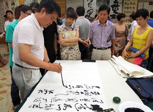据了解,此次活动由安顺市文联、安顺市书法家协会、西秀区文联、贵州黔中源投资集团共同主办,贵州省书法家协会主席、副主席为参加活动的40多位书法骨干作者现场点评作品,并挥毫示范创作。参加活动的书法家共为贵州黔中源投资集团创作书法作品20余件。