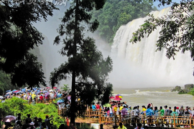 7月14日至7月16日,黄果树瀑布景区接连经历几场大暴雨之后,黄果树大瀑布迎来最佳观瀑季。7月19日,记者走进景区,欣赏到大瀑布罕见的壮美奇观。为了看到大瀑布最美景色,全国各地乃至国外游客纷至沓来,景区人气达到最旺时候。