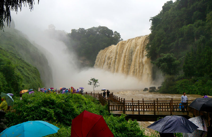 9月16日夜间到18日凌晨,黄果树持续降温降雨,迎来了真正气象意义上的秋天。大瀑布水量上涨,气势壮观,18日早晨流量达到了190立方米每秒,接近今年夏季最大水量的一半,创造了近十年来黄果树瀑布同期的最大水量值。