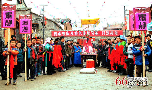 安顺屯堡迎春民俗“抬汪公”热闹举行