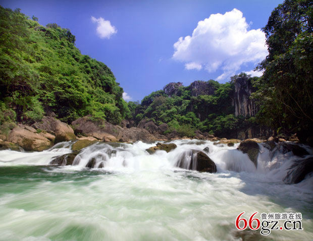 龙宫景区位于贵州省安顺市南郊,距安顺城区27公里,距贵阳116公里,距享誉中外的黄果树大瀑布仅30公里。景区开放于1984年,总面积60平方公里,核心游览区面积约18平方公里。景区于1988年被评为第二批中国国家级风景名胜区,2007年被评为首批国家AAAAA级旅游景区。景区集溶洞、峡谷、瀑布、峰林、绝壁、溪河、石林、漏斗、暗河等多种喀斯特地质地貌景观于一体,是喀斯特地貌形态展示最为集中全面的景区,被誉为“天下喀斯特,尽在龙宫”。龙宫景区由龙潭秘境和通漩田园两大主题片区组成,拥有中国最长最美水溶洞(一、二进龙宫)、中国最大洞中佛堂(观音洞)、中国最大洞中岩溶瀑布(龙门飞瀑)、中国原子能机构测定的世界天然辐射剂量率最低的地方,世界最大的水旱溶洞集群,世界上最大单体汉字“龙”字田等得天独厚的自然资源,和以布依、苗族为主的多样民族文化等多种旅游资源;其丰富的喀斯特地质地貌,奇妙的自然景观,多彩的民族风情旷世稀有;独特的龙文化、淳朴的宗教信仰,清新的田园气息交相辉映,绘就一幅怡然自得的人间仙境画卷。