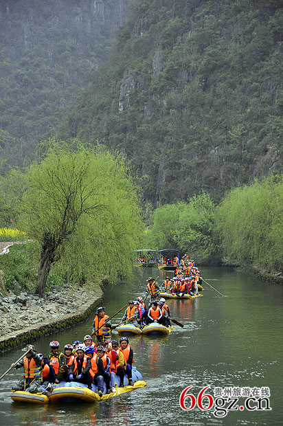赏花攻略:早晨或午后从贵阳或安顺出发,沿沪昆高速进入大山哨(龙宫站)下站,进入龙宫入境公路,看道路两旁油菜花盛放。行至油菜河,看金黄色油菜花围绕河流盛开的无限风光,如幻如梦。前行1公里,到达由两种农作物套种,占地面积约8万余平方米的世界最大单体汉字龙字田,看油菜花组成的金色飞龙。车辆前行5分钟至中国最美休闲乡村--桃子村,望漫山遍野的桃树,随处可见的桃花,化身桃花仙人置身神仙秘境,体验桃花坞里桃花庵,桃花庵下桃花仙的隐居田园生活。