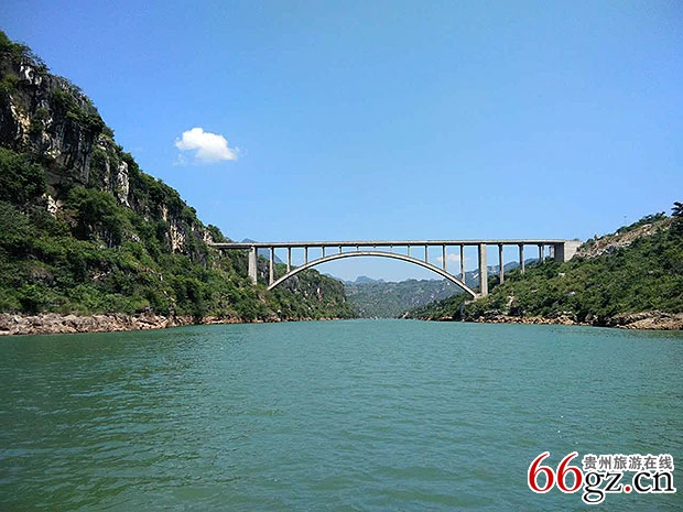 峡谷深切千米,长约80千米,宽3千米,总面积约300平方千米。峡谷两岸峰峦蜿蜒,山崖耸峙如犬牙交错。峰林峰丛似海。谷底飘带般奔腾的花江河,水势汹涌,浪花翻滚,响声如雷。绝壁上,藤蔓攀附,古木丛生。据史书记载,花江河流域即为古夜郎中心地之一,其历史悠久,文物古迹颇丰。