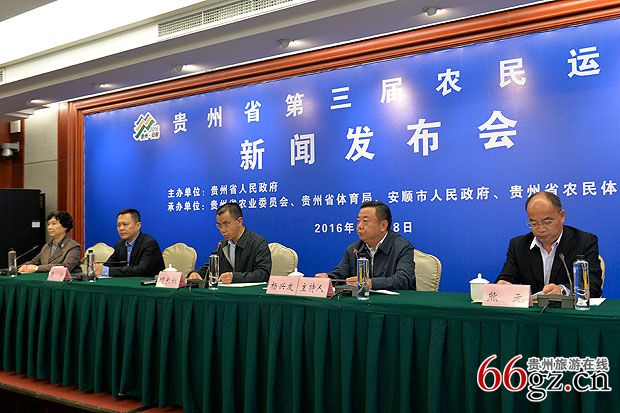 贵州旅游在线讯 由贵州省人民政府主办,贵州省农业委员会、贵州省体育局、安顺市人民政府、贵州省农民体育协会承办的贵州省第三届农民运动会将于10月28日至11月1日在安顺市隆重举行。10月18日下午,以“开局就是决战 起步就是冲刺”为主题,在贵阳市召开新闻发布会,向社会公布本届运动会筹备情况,邀请广大体育爱好者届时前往观看。