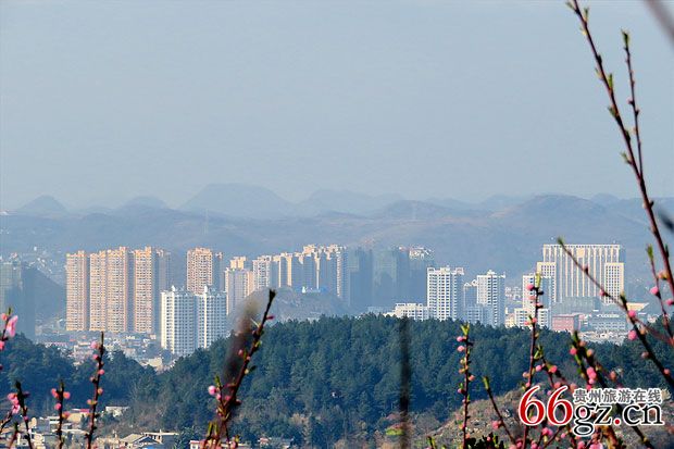 从宝塔山的桃林可远眺镇宁县城。王恒山 摄影