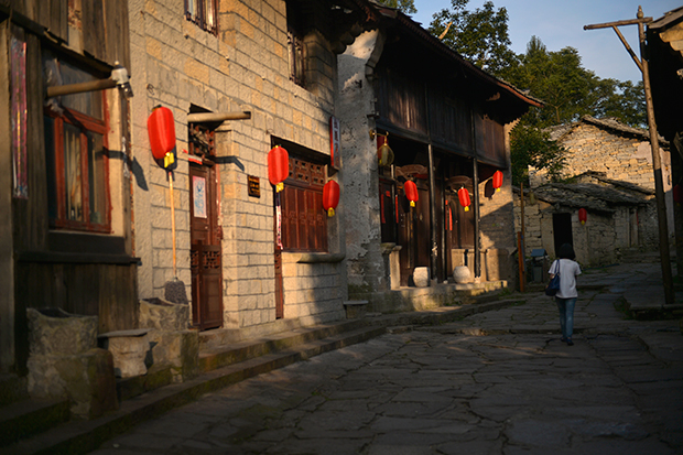下午,采风团员一行从本寨徒步近2公里由后屯门进入云山屯,村寨只有前后屯墙的两个城门,前后屯门都是用巨石垒砌而成,两旁的城墙,高7至8米,厚约1.5至2米,前门屯墙全长近1000米,上有炮眼和垛口。从后屯门到前屯门,是屯堡一条街,许多小巷巧妙地与各户的三合院、四合院、碉楼等相连接,原来的布号、米肆、药铺等遍布全屯。
