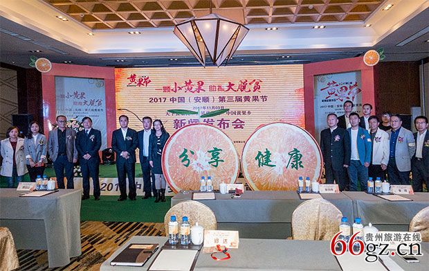 贵州旅游在线讯 11月3日,2017中国(安顺)第三届黄果节新闻发布会在贵阳市举行,本届黄果节以“一颗小黄果、助推大脱贫”为主题,创新实施“政府搭台、公司办节、市场运作”的模式,由中国(安顺)黄果节活动组委会牵头,黄果树旅游集团股份有限公司、贵州昊远隆基房地产开发有限公司协办,贵州黄果树旅游产业发展有限责任公司承办,大唐文化全案策划运营。开幕式定于11月25日在黄果树旅游区瀑韵天城中心广场举行,精彩纷呈的活动将持续至12月10日。