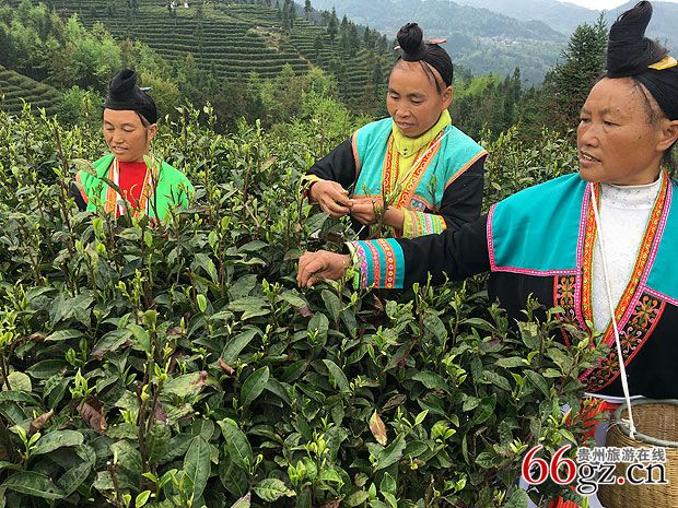 贵州旅游在线讯 3月30日,在贵州省镇宁自治县江龙镇茅草村2000多亩苗家云雾茶园里,200多名当地的茶农正在采摘明前茶。从3月10日进入采茶期后,每天都有200多名茶农采茶。茶农采茶忙,茶商步履急。