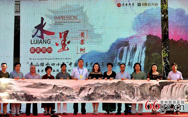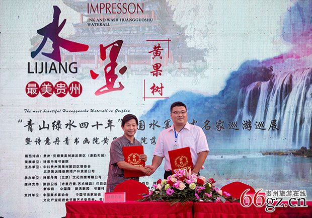 活动当天,艺术家在黄果树景区开展“中国水墨艺术名家巡展暨诗意丹青书画院落地黄果树签约仪式”,并向黄果树景区赠送了“黄果树山水十米画卷”。