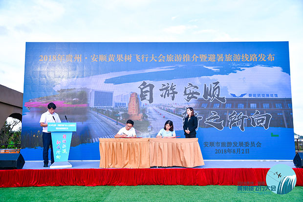贵州旅游在线讯 8月2日,2018年贵州·安顺黄果树飞行大会旅游推介暨避暑旅游线路产品发布活动在安顺市举行。