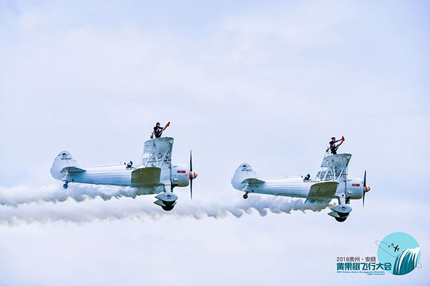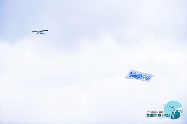 据了解,此次飞行大会特技飞行表演的平均时速在200公里以上,但唯有美国空中海报队是个例外。这支表演队伍所执飞的哈士奇飞机,本不属于特技飞机,经过特殊的改装后将飞行时速降为80至100公里,在空中拉出“2018贵州·安顺黄果树飞行大会”的巨幅海报。
