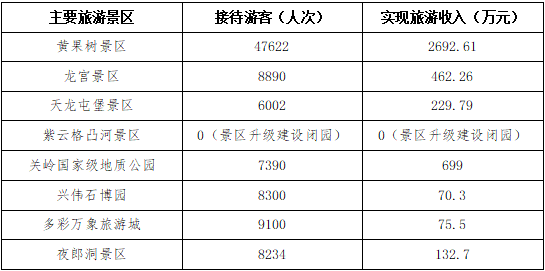 2018年“中秋节”小长假期间,贵州省安顺市共接待游客160.51万人次;实现旅游总收入10.25亿元。