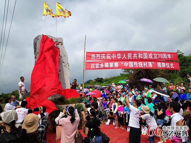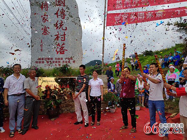 上午9点58分,鲜艳的红绸在雄壮的歌声中缓缓落下,村民自发捐款的纪念碑上“中国传统村落”6个大字在美丽的蓝天下先得格外夺目。当傅家寨村民代表接过“中国传统村落”牌子的那一刻,鞭炮声响彻云霄,村民一片欢腾!