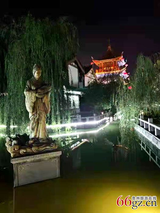 漫步在小桥流水人家的苗岭屯堡景点之一的《遁水圣母传说石雕》前,拍下这美丽的神话版夜景,为我们多彩的贵州感到自豪,一步一景,昼夜景色撩人……
