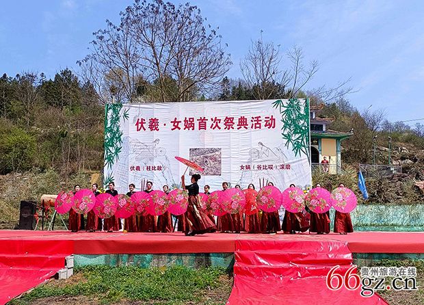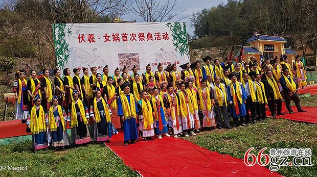 祭祖程序结束后,镇宁锦绣布艺文艺队表演了《缅怀中华民族人文始祖伏羲女娲》精彩的歌舞,一是对祖先的缅怀;二是原生态歌舞、乐器,营造了浓郁的节日氛围,让参加的各族群众在节日中感受文化的韵味;不仅是增添了“伏羲女娲首次祭典” 活动的内容,而且丰富了群众的文化生活。 全体合影结束。