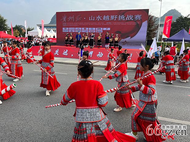 在开幕式上,精彩活跃的盘江小调及苗家少年的花棍舞等节目极富有民族文化内涵和地域特色,体育健儿活力四射的表演更将贵州全民健身和体育竞技的热度拉满。红色文化讲解员王琳,在现场分享红军长征经过安顺的感人故事:1935年,中央红军长征在安顺400多个村寨留下足迹和感人至深的故事,横跨北盘江的关岭花江铁索桥,承载着深深的红色印记,见证了红军战士的英勇顽强与坚忍不拔。红一方面军前卫部队渡过北盘江后,为掩护中央红军纵队安全撤离,红三军团曾在此设防,凭借天险堵截关岭安顺一线之敌。如今,随着挑战赛的举办,红岩天书、茶马古道、坝陵河大桥、古生物化石群、冰雪小镇……这些历史文化与现代文明交织的旅游景观,更加凸显别样的风采。