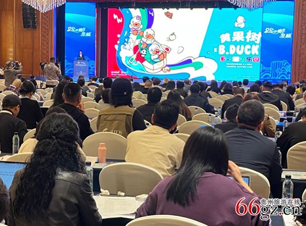 马蜂窝贵州总经理宋杨,推介小车小团贵州新玩法产品;红色旅游推荐官黄訾女士,发布红色旅游联盟产品;贵州省旅行社协会研学旅游分会会长刘琴女士,作聚焦新质生产力打造世界级研学旅游目的地暨“贵州多彩研学”品牌及线路发布;德盈商贸(深圳)有限公司首席营销官黄亚辛女士,作黄果树×B.Duck小黄鸭多彩漂流乐园项目发布。