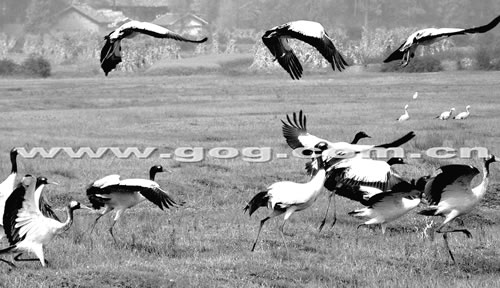 据介绍,今年来草海越冬的鸟类最先到达的是国家二级保护鸟类灰鹤,时间为9月27日,而一级保护鸟类、草海的主要保护对象黑颈鹤则是10月13日夜间到达的,首批到达的有32只。与往年相比,今年的黑颈鹤比去年迟到了12天,比近10年来的平均到达日期迟到11.5天。迟到的原因主要是近期我国南方的天气持续阴雨所致。为确保鸟类安全越冬,草海管理局已经在保护区内先期种植了鸟类食物如苜蓿、萝卜等,并对各鸟类主要栖息地进行了卫生处理,而且专门针对候鸟可能携带禽流感的情况,在整个草海保护区范围内开展了防疫工作,进行了药物喷洒。工作人员还介绍,黑颈鹤将在今后的5-10天全部到达草海,预计今年到草海越冬的黑颈鹤将突破1300只,其它的近200种越冬鸟类将在10月底前陆续到达草海。