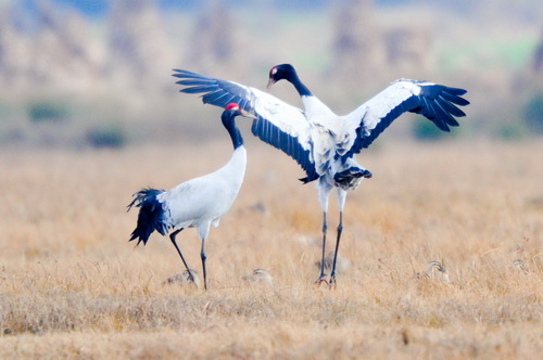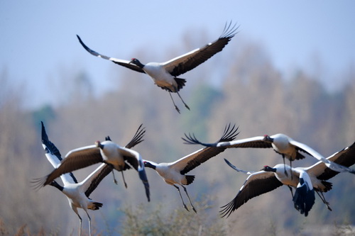 今年入冬以来,贵州省威宁县湿地草海陆续迎来近千只国家一级保护动物——黑颈鹤。贵州省威宁县的草海是典型的高寒湿地,适合黑颈鹤越冬,加上近年来,当地村民环保意识增强,前来越冬的黑颈鹤数量逐年增加,已经从1997年的近500只增加到今年的近1000只。