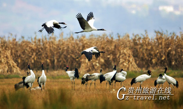 其中,中国特有的高原候鸟黑颈鹤,每年都要在这里越冬。草海主要保护以黑颈鹤为主的湿地鸟类。草海素有“鸟的王国”之称,共有鸟类100余种、珍稀鸟类70余种,特别珍稀的鸟类有黑颈鹤、灰鹤、丹顶鹤、黄斑苇雉、黑翅长脚鹬和草鹭,还有大量的大雁和野鸭,是世界人禽共生、和谐相处的十大候鸟活动场地之一,是秋冬摄影观鸟的最佳选择地。