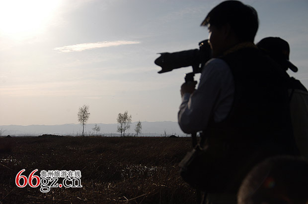摄影家们感受草海日落美景