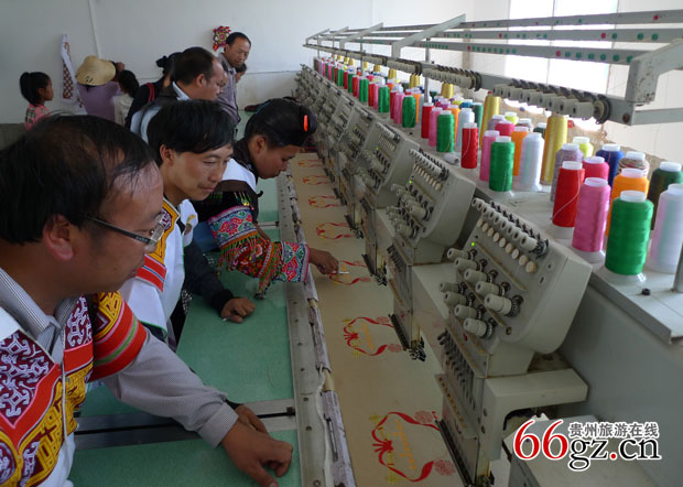 当前正值旅游旺季,为了赶制60余万元的苗族绣花旅游工艺品订货,在大方县黔西北民族文化旅游工艺品厂里,苗族工艺师们冒着炎热高温加班加点,3台12头绣花机、6台平车机、2台绕线机、1台分线机和1台大折皱机同时操作,呈现一派热烈繁忙、紧张有序的景象。