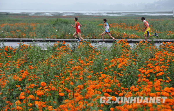 9月7日,选手在贵州省毕节市威宁县草海湖畔参加长跑比赛。当日,贵州省威宁县举行“激情草海”万人长跑活动,近万名长跑爱好者在草海湖畔奔跑,享受运动带来的快乐。