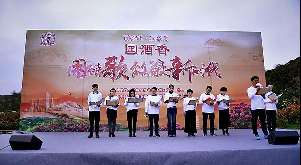 3月24日,由贵州广播电视台综合广播主办、贵州中烟工业有限责任公司特别支持的“百姓富·生态美——国酒香‘用诗歌致敬新时代’”活动在百里杜鹃举办。全国知名金话筒主持人、作家、摄影家及媒体人齐聚花海,共同朗诵诗歌,在醉美贵州用最美声音将贵州的秀美、贵州的变化通过电波传递至祖国的大江南北。