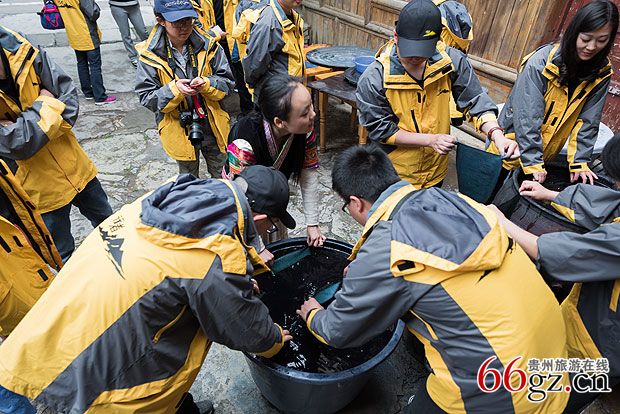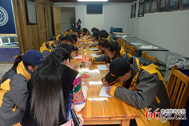 苗族妇女们身着盛装,手上端着酒杯,吹着芦笙,欢迎行者队伍的到来。与此同时,蔡群苗族蜡染刺绣工作坊也已为行者们准备了画蜡画需要的工具,有蓝靛、蜡刀、布料...我们的行者们将在这亲自体验一番非物质文化遗产——织金刺绣蜡染画的绘制过程,用蜡刀画出各自心中的“行者”形象。