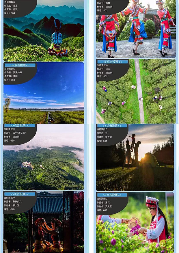 苗家小孩对亲人思念的背影、夏日里草海的蓝天白云青草地、俯瞰茶喷走在山间的采茶少女、夏日里云雾缭绕的“塞罕坝”……光是在后台看摄影家们的照片,都有一种正游荡于花海毕节的感觉。