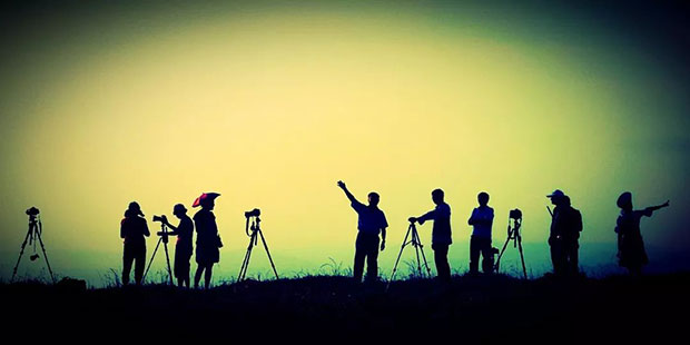 为了拍到一张独特的照片,有的老师不是凌晨出发,前往山顶就是为守一轮日落,等上三五个小时……下面这张图,是摄影师们在贵州之巅韭菜坪上取景的瞬间。