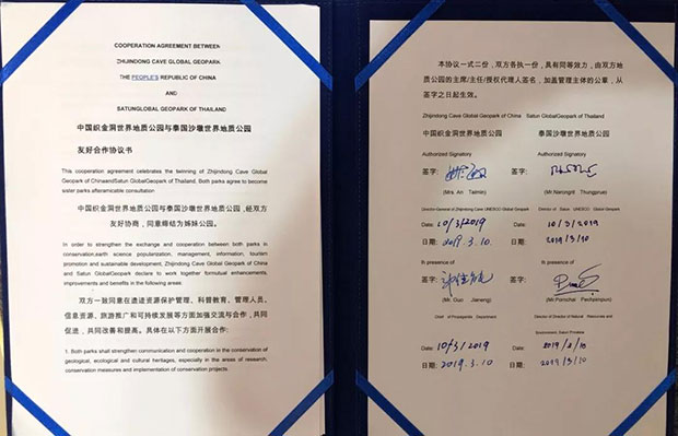 近日,在泰国沙墩省,中国织金洞世界地质公园和泰国沙墩世界地质公园共同签署合作协议,双方一致同意缔结成“姊妹”公园关系,在公园的地质遗迹保护、科普教育、人员培训、信息共享、旅游推广和可持续发展等方面加强交流与合作,共同促进、改善和提高公园管理。据悉,这是织金洞世界地质公园2015年联合国教科文组织批准建立以来,在中国境外寻求合作的第一家“姊妹”公园。