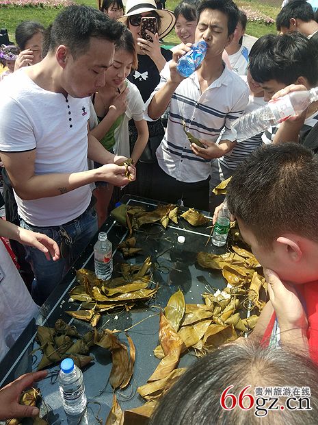 工作人员把已经蒸熟的粽子按照10个一盘的标准摆放好,报名参加比赛的游客按照8位一组进行分组吃粽子比赛,每组决出一名冠军,现场给予礼品奖励。为了安全考虑,比赛仅接受青壮年报名,老人火热小孩在旁边为大家加油助威,值得一提的是,这次比赛摒弃了一贯的以食量取胜的传统玩法,开发出了以速度取胜的将康方式,活动在传承传统文化方面具有非常积极的意义,也是互动性和娱乐性都很强的活动,适合大部分年龄段的游客体验,后期可以作为常规旅游体验项目推广和保留,这次活动费也得到了参赛者的一致好评。