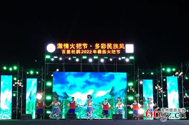 7月19日至22日,由百里杜鹃管理区彝学会、百里杜鹃旅游集团有限公司主办,贵州星绘创意文化传媒有限公司承办,毕节乌蒙演艺集团协办的彝族火把节,以“激情火把节·多彩民族风”为主题,举办了精彩纷呈的系列活动,旨在不断丰富百里杜鹃旅游要素和文化内涵,推动文旅融合高质量发展,促进贵州文化旅游进一步复苏。系列活动包括在百里杜鹃鹏程一期广场举行的“民族团结杯”乌蒙欢歌广场舞大赛、“京师杯”彝族音乐广场舞大赛,由民族民间艺术队和索玛艺术团在花瓣桥停车场举行的民族风情歌舞展演,在旅游服务中心举行的非遗传统医药及康养文化与旅游有机结合、推动旅游经济高质量发展的交流活动,在原索玛大草原巨石阵举行的神秘古朴的取火仪式等。