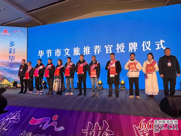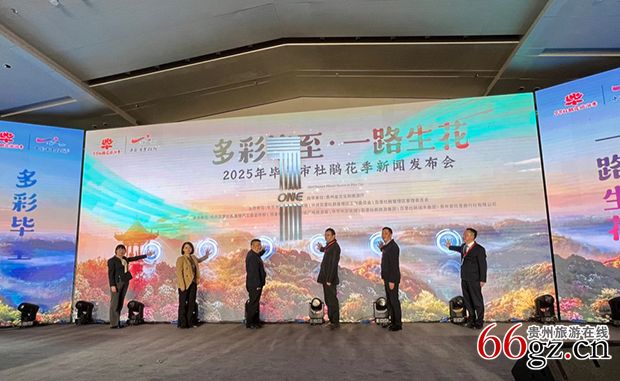 发布会上,向毕节市文旅推荐官授牌;中共毕节市委常委、宣传部部长张建军,毕节市人民政府副市长游劲松,贵州省文化和旅游厅四级调研员周乾远,中共毕节市委宣传部副部长、市文化广电旅游局党组书记、局长饶萍,百里杜鹃管理区党工委书记刘元刚,百里杜鹃管理区党工委副书记、管委会主任彭婷共同触屏,正式启动 “多彩毕至·一路生花”毕节市杜鹃花季。