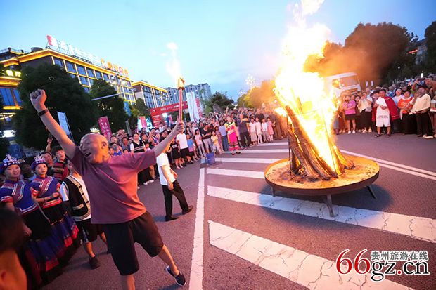 随后,巨大的篝火在花瓣桥十字路口点燃,熊熊火焰照亮了夜空,点燃了选手们的热情。参赛者们与当地居民手牵手,围绕篝火欢快起舞,不分彼此、不分地域,尽情享受着这一刻的欢乐与放松。来自成都的游客华正富是第二次夏天来百里杜鹃避暑,他兴奋地挥舞着手臂:“每年都来纳凉,今年竟然赶上篝火晚会,亲手参与点火的瞬间太震撼了!以前只知道这里景美凉快,第一次了解到‘贵州红’系列赛事,把红色文化和户外运动结合得这么巧妙,今年真是不虚此行!”来自凯里的李清江堪称贵州红·山水越野挑战赛的忠实粉丝,去年他一口气参加5站比赛,今年5月的黎平站也未曾缺席,这次又将出征百里杜鹃站精英组。“这个赛事对我们户外运动爱好者来说很有意义,既能在全省各地的绝美景区挑战自我,又能跟着赛道重走红色足迹,还能把贵州的山水风光、民族文化推广出去,一举多得!”李清江说,赛前有这一场精彩晚会和温馨的篝火聚会,让他对明天的比赛充满了期待。此次百里杜鹃站的预热活动,不仅为选手们提供一个放松身心、交流互动的平台,更让大家提前领略了百里杜鹃的红色文化、民族风情与热情好客。