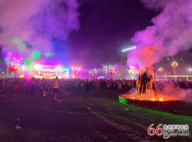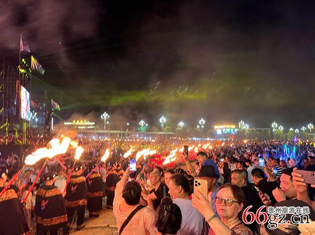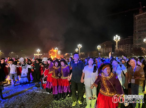 随着祭火经的诵读和一系列非遗的精彩展演,四周涌出6支长长的火龙队伍汇聚到广场,共同点燃象征团结与兴旺的篝火堆,正式开启万人篝火狂欢的乌蒙欢歌。成千上万的观众无论男女老少、手牵着手,里三层外三层,在一个个篝火堆前围成无数个圆圈,编织出一片人与火的炽热海洋;当脍炙人口的“蓝莲花”在中央舞台响起,激情互动的乐队演出将活动推向又一高潮;狂欢夜尾声,五光十色的焰火秀在夜空中璀璨绽放,将整个篝火狂欢夜的气氛推至顶点,为活动画上圆满句号。