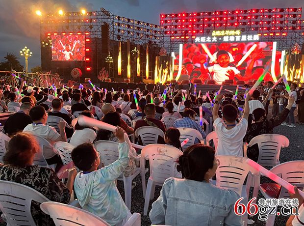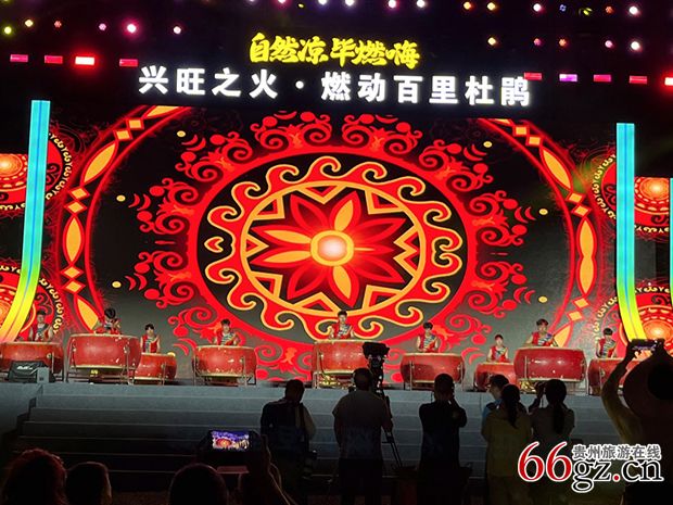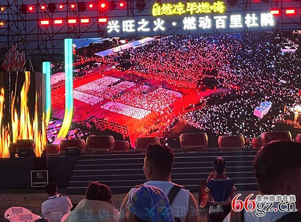 活动现场,弘大气派的舞台上精彩纷呈,场外大屏幕上一幅幅画面闪亮叠出,无数无人机在夜空中飞鸟般翱翔,广大观众摇着荧光棒不停欢呼,场内场外歌舞升腾、群情激昂、篝火爆燃、热闹异常,使“摄氏19度的百里杜鹃”一下子从“自然凉”进入盛夏。