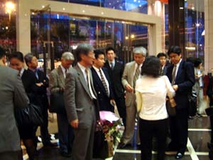 9月27日下午7时,“研修团”达到贵阳圣丰大酒店,贵州省旅游局傅迎春副局长一行热情迎接“研修团”,随后在酒店进行了恳谈会。