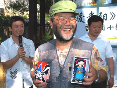 新华网贵州频道8月10日电 8月9日,日本友人吉川团十郎在“我爱贵阳”新歌首听慈善活动上演唱自己创作的宣传贵州的日文歌曲。作为“贵州旅游亲善大使”,日本民间艺术家吉川团十郎多次来到贵州省采风,创作了《贵州旅情》、《贞丰旅情》、《我爱贵阳》等十余首宣传贵州的日文歌曲。