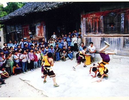 在29日的开园仪式上,“上刀山、咬铁火”、“猴王祭母”、“迎宾典祖结情缘”等众多极具毛南风情的节目让游客大开眼界。