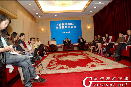 洽谈会上北京各位旅行社代表紧紧围绕如何与贵州省的旅游企业、演出公司通力合作,共同推介营销《多彩贵州风》这一产品,从中找到使各方共赢的商机展开了讨论。