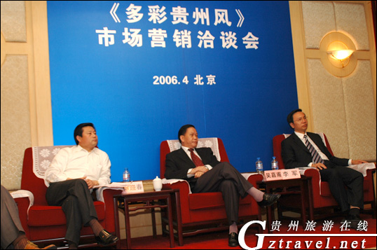 贵州省旅游局副局长傅迎春主持会议(左一)